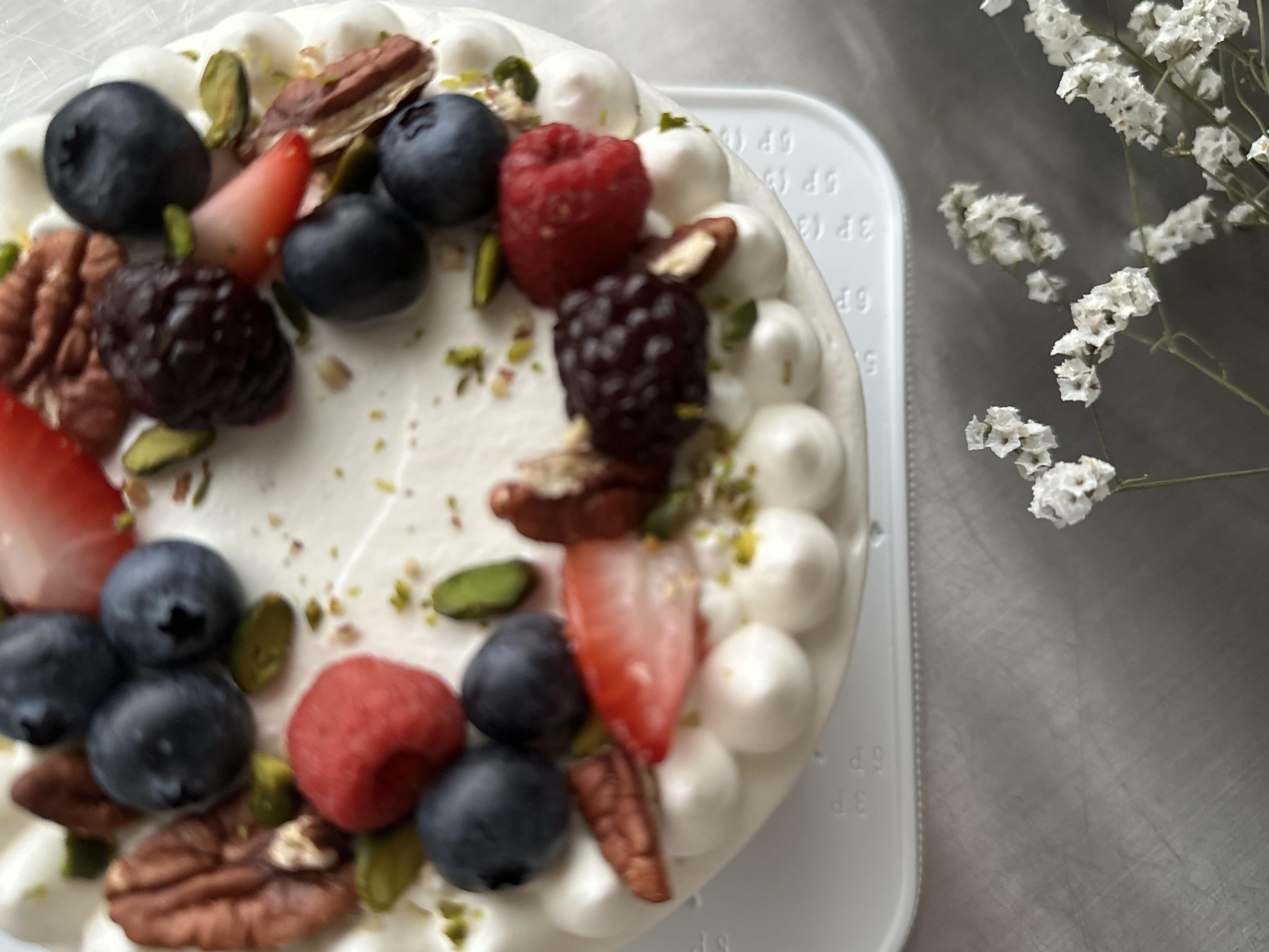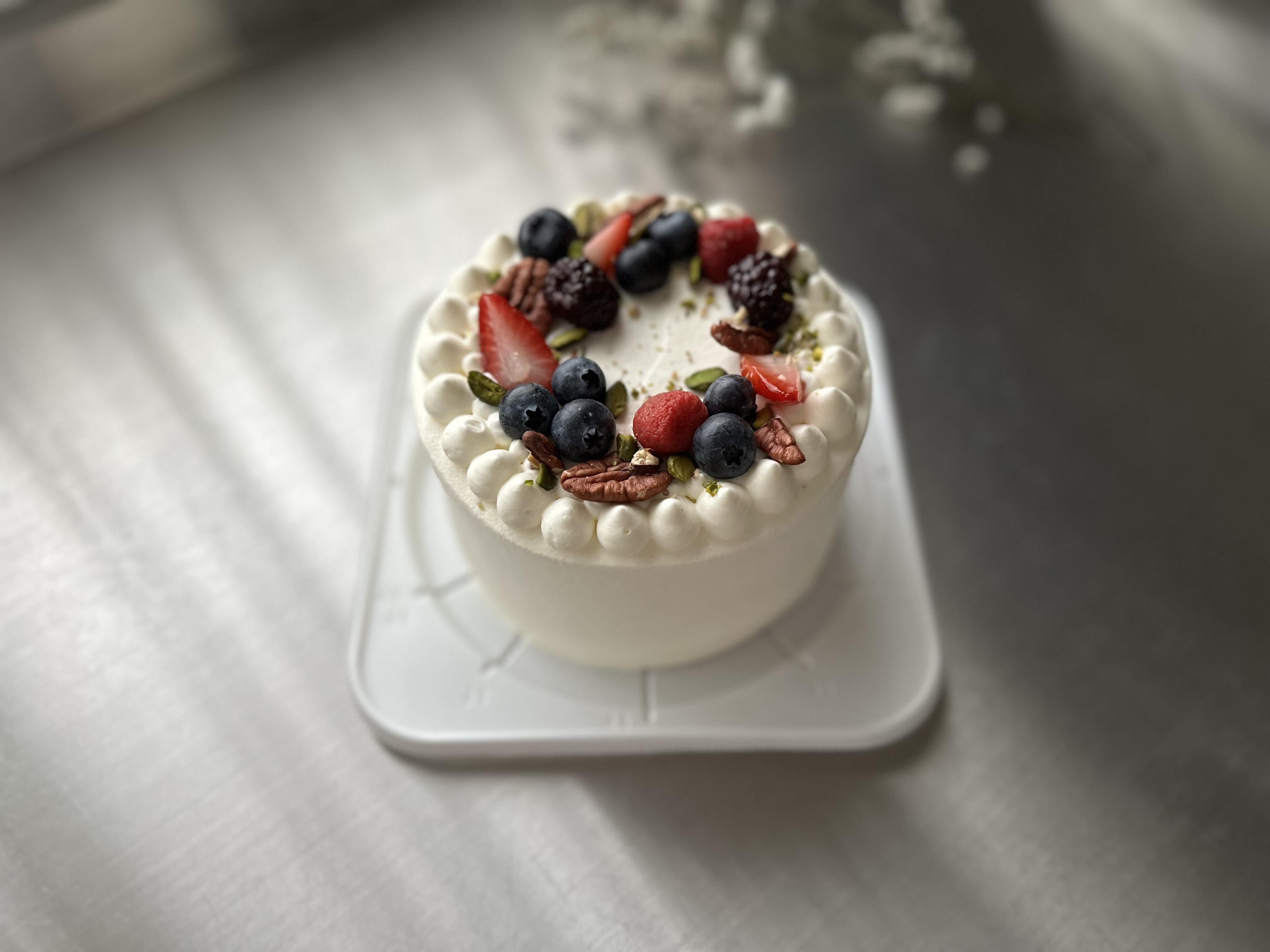 表面は、苺の他にナッツやブルーベリーが中心ですが